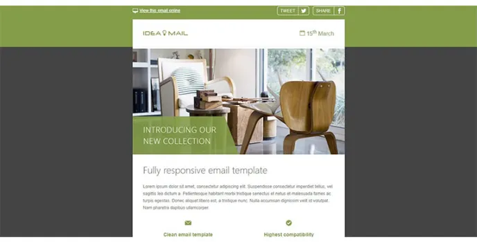Explore a wide range of responsive email templates to build highly responsive emails for businesses. By sending these to customers or business clients, one is sure to get a suitable reply because the templates of Idea Mail are creative and impressive compelling the mail receivers to take a double-take. With the help of Idea Mail, they can be structured in a way that they convey the message strongly with less content and more background.