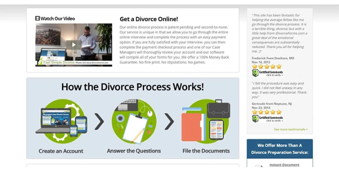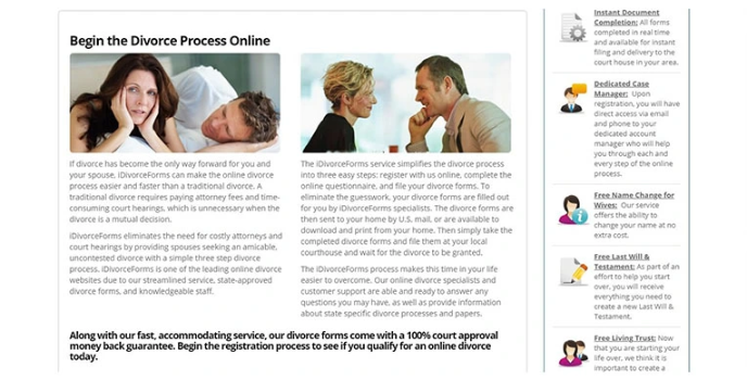IDivorce is the best online service legit platform that offers a complete divorce proceeding. The responses collected get reviewed by the case managers. The fact-checked automatically by the software compiling into a file.