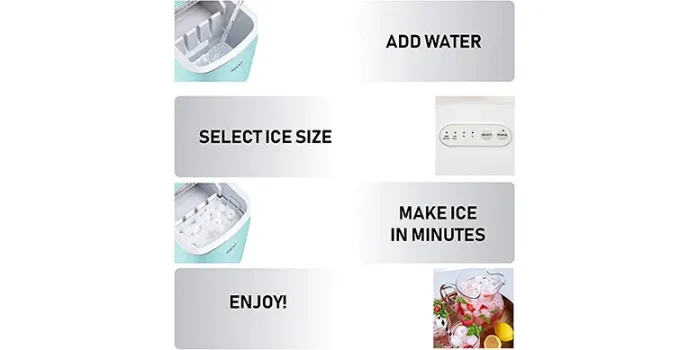 The water tank capacity of this Igloo compact ice maker is 3 quarts and the ice basket can store up to 2 pounds of ice at a time. Using the countertop quick ice maker can help you to make 9 large or small cylinder-shaped ice cubes in a span of just 7 minutes. The product dimensions of this best clear ice cube maker are 9.61 x 14.69 x 12.4 inches and weigh 22.7 pounds that renders it as a great portable mini ice maker. In case you are worried that how to clean Igloo ice maker, this Igloo ice maker cleaning is absolutely effortless and hassle free. You can choose to buy an Igloo online ice maker that features an easy-to-understand control panel and a transparent lid for easy viewing. You can choose to buy Igloo products as best Igloo strives to offer only the best. Also explore the freestanding automatic kuppet ice machine and GE ice machine.