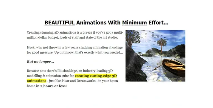 Illusion mage is software that offers features of 3D animation created from the comfort of your homes. The website of this animation software is quite graphically enhanced and contains many CGI effects.