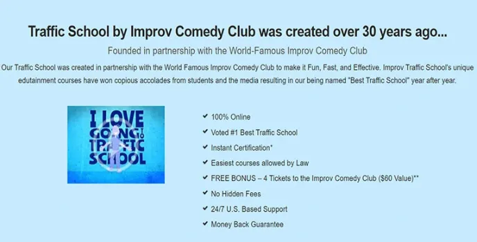 Improv online traffic school edutainment courses have won copious accolades from students and the media, resulting in the best traffic school year after year. It is also similar to Safe2Drive and Aceable that provide 24 hrs services to study on their schedule.
