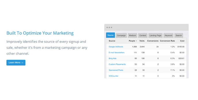 It's a conversion monitoring tool and pay-per-click tracking software that also aids in the prevention of click fraud in your campaigns. Improvely is the perfect platform for monitoring clicks and conversions in order to run a successful, effective, and safe online marketing campaign. This isn't, though, a one-trick pony of a tech solution. It's a multi-faceted platform that combines click monitoring, conversion tracking, click fraud detection, landing page split checking, and affiliate marketing tools into a single user-friendly framework.