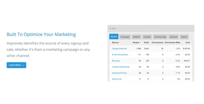 Improvely is a comprehensive and dependable software solution like Trck. me and RedTrack that many marketing agencies and freelance marketers can use to improve their conversion monitoring capabilities and protect their ad campaigns from click fraud and other suspicious activities.