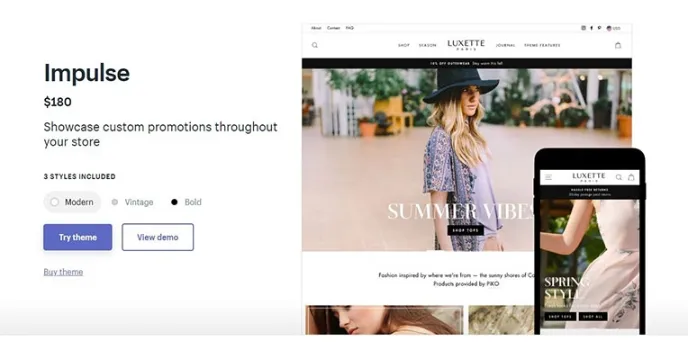 This is one of the best premium Shopify themes collections, specially designed for promoting custom promotions throughout the store. This theme is available in three styles – modern, clean, and bold. Each style helps in giving an elegant experience; thus, choose the one that meets your requirements. This Impulse Shopify theme is supported and designed by the Archetype Themes.
