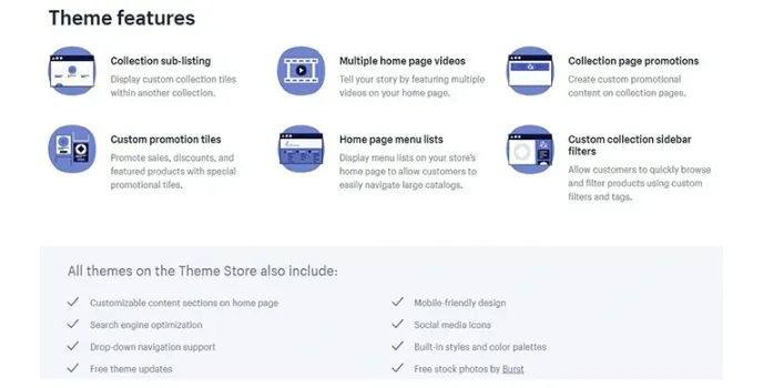 Promotions play a crucial role for every business as they help in attracting more users to the store. And, to fulfill this need, this Shopify theme is the best one. Also, along with their evident features, this theme gives great support for your business. It has a custom sub-listing option, and this helps in displaying custom collection tiles within other collections. With this theme, you can easily create custom promotional content on different collection pages. There are various custom promotion tiles, and this helps efficiently for promoting discounts, featured products, and sales.