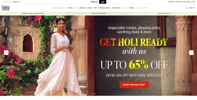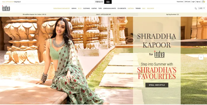 Indya targets women, ladies, and children for their popular and refreshed determination of Bollywood-motivated design articles of clothing, for example, Lehenga sarees, elite sarees, wedding assortments, cape-tops, and salwar kameez for a soothing shopping experience.
