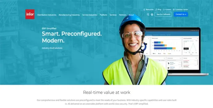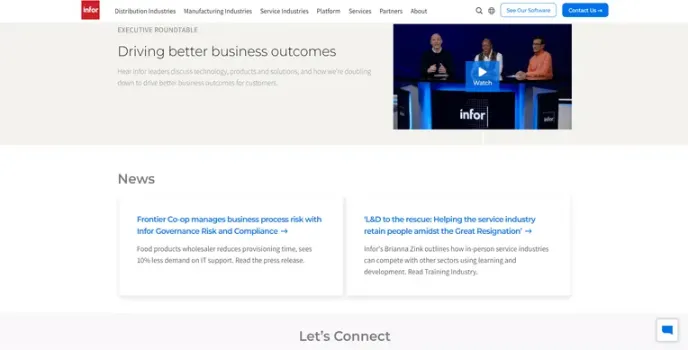 Infor offers ERP software companies and other enterprise business software. This company provides dozens of products, including dozens of old platforms acquired from other companies and products that are strong in food and beverage, process manufacturing, distribution, and healthcare.