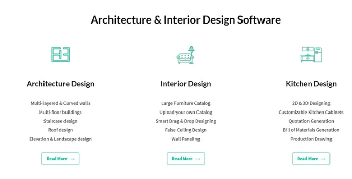 This interior design tool offers architecture design in the form of multi-layered and curved walls, multi-floor buildings, staircase design, roof design, and elevation design. Along with that, you can easily design wall panels, false ceilings, or even upload your catalog, and the design is similar to Live Home 3D and Amara.