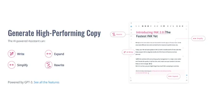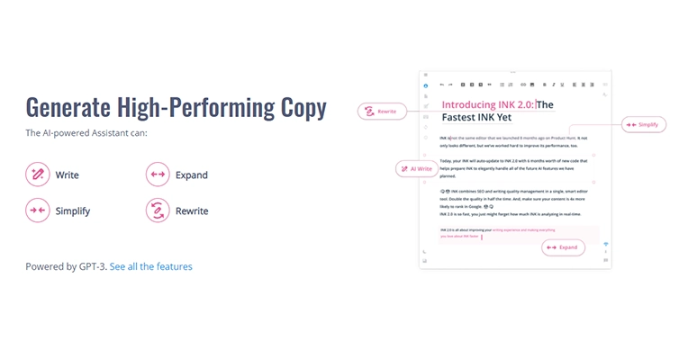 Write, simplify, expand, and rewrite with INK software provides a distraction-free editor interface that lets you utilize powerful features and commands to write desired content as blogs, articles, and post-hassle-freely.