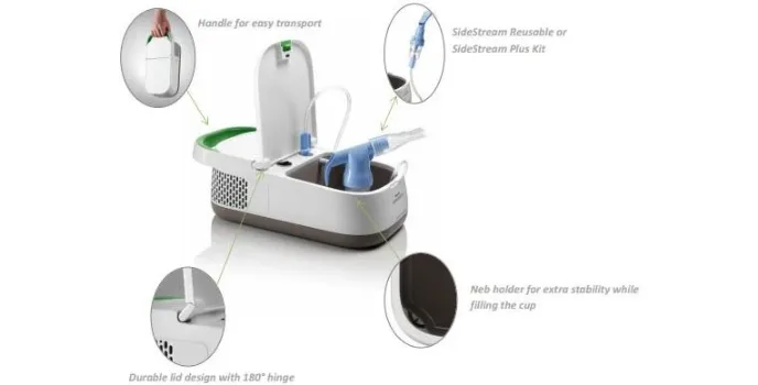 - Integral storage space for nebulizer accessories