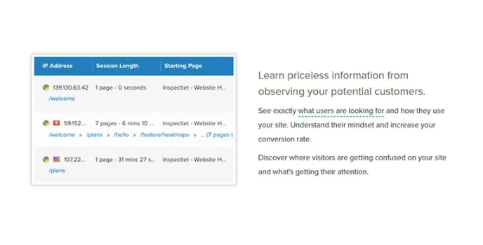 Inspectlet records every single detail of a visitor on a website. This helps in knowing how the visitors are using the website. It is the optimization tool that records visitors' site journey. It also a conversion rate optimization tool that improves visitors' engagement to the site and increases website traffic with advanced conversion tools.