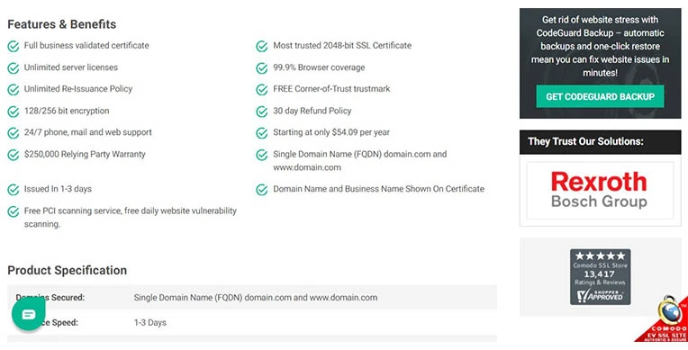 It brings a massive benefit for business owners or web visitors. Gaining a customer's confidence is very important if you want to be a successful online business owner. It is the best Comodo SSL certificate that comes in different forms and is used to keep customer data secured.