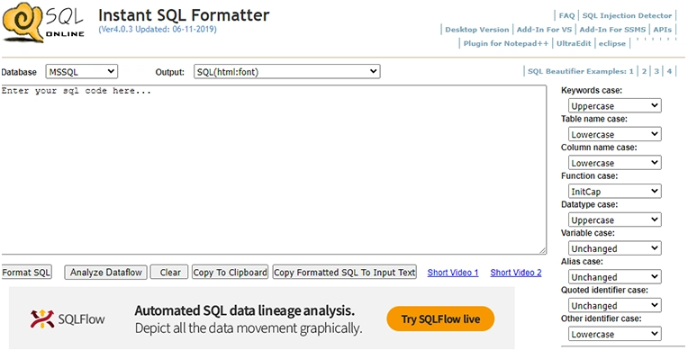 Instant SQL Formatter - Syntax Checker Online For Multiple Code Output