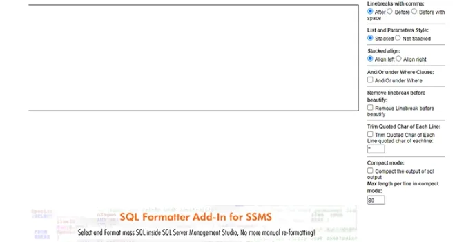 Instant SQL Formatter - Select And Format SQL Syntax Checker Online