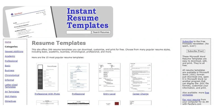 Instantresumetemplates - Features Customizable Templates For All Career Fields