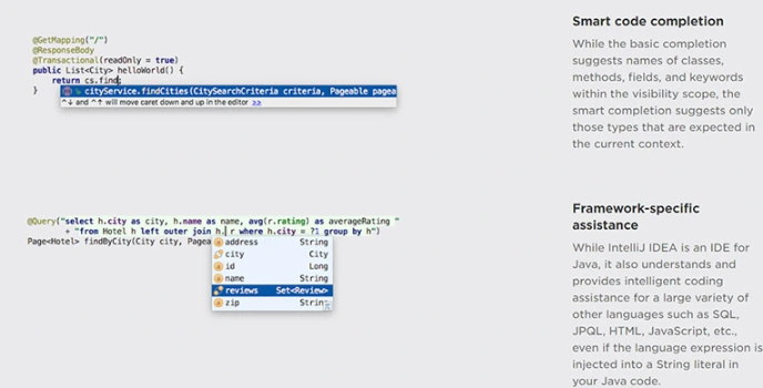 IntelliJ IDEA - An Intelligent IDE with framework-specific assistance and Productivity Boosters