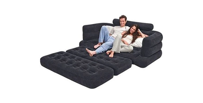 You might have seen quality sofas like this before in your friend's living room who loves to spend his money on things that can be used in multiple ways. The Intex pull-out sofa is that one sofa you need for all your sitting needs. Suppose you want to have a bed, sofa, and a couch all in just one thing. Then you need to have this Intex pull out an inflatable sofa. The Intex sofa can be easily converted into a corner couch, and you can easily put air inside of it. Likewise, when you are using air to get something to rise, you will get maximum comfort with uniquely styled sleeper and settee sofas. Cause practically, and you are sitting on air with a thin membrane that is holding all the air inside of it. This inflatable pull out sofa can be converted into a bed when you want them. Thus, you donโt have to pick yourself up from a good movie and then go to the bedroom to get a good nightโs sleep.
