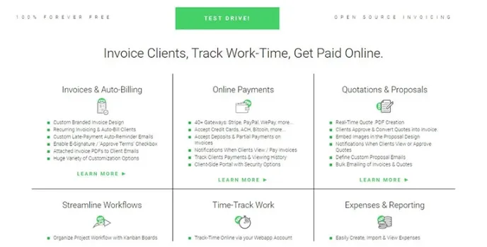 This is a simplified and integrated invoicing toolkit. It is an easy invoicing system for businesses. It also supports time tracking and payment collection tools. So, with these fantastic features, you don't have to look anywhere else for any other software.