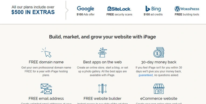 iPage - Provides a Free Domain name, Email Address, Website builder
