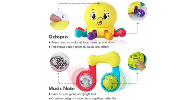 The products that come in this set come in various textures that help provide tactile development for taste, touch, and smell senses. The collection also includes multiple sound toys that help provide an enhanced sensory experience to all the babies and various colors and patterns that improve eye-tracking skills. These gifts for newborn babies do your shopping for Babies more conveniently. It also seems to be a great stroller toy. The IPLAY, ILEARN gift suit has different grift and shaped rattles.