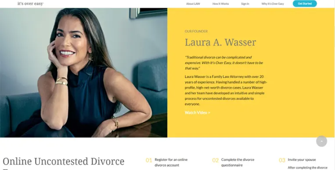 Laura A. Wasser is a family law attorney and has seen many high-profile cases. She has experienced the complexity of the legal process so, to make the uncontested divorce process simple and available for everyone, Laura Wasser has come up with Itβs Over Easy - a smart divorce tracker and organizer from plenty of online services websites for couples.