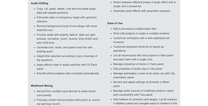 This is a top-notch music editing software that gives access to get an overview of the editing process's visualization. It provides the same benefits that Adobe Audition editing software and Apple Logic Pro X for mac offers. It supports audio files of all formats like MP2, MP3, AU, WAV, etc. It is a comprehensive program where step-by-step processes are available of editing and mixing is done to avoid confusion.