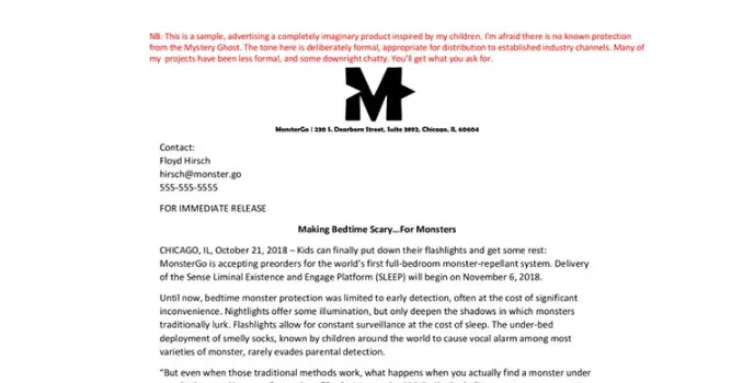 - Writes detailed press release for clients