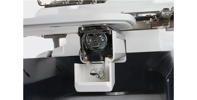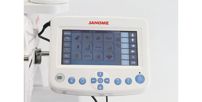 Janome with a remote computer screen that lets the users manage the different settings. It is just like an LCD. This RCS allows people to see the visual image of embroidery design that an LCD screen cannot.