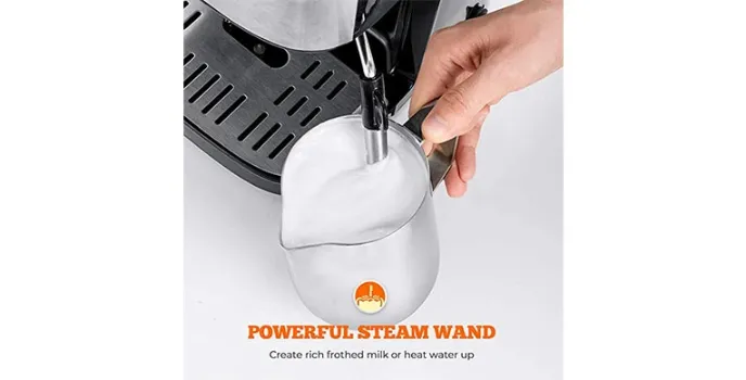 Furthermore, it comes with a dedicated self-cleaning lever that provides intensive cleaning of the machine and milk container. You need to press this lever for about five seconds, and the powerful machine will do the remaining work. Moreover, this espresso machine features a massive power of 19 bar pressure that accounts for the machine's high performance that provides the users with a creamy texture and taste of the espresso coffee. The milk carton, liquid tank, and drip tray are easily removable that aids the user in the cleaning process. Users can easily disassemble these parts of the espresso machine for cleaning purposes without fear of damage, leakage, or breakage or any other performance issue.
