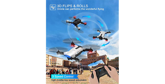 With many easy functions and features, even drones for kids and beginners can enjoy a great time flying this device. Use the one-key take-off and landing feature to fully control your device without any hassle. This drone is capable of executing 3D flips and rolls in different directions. You will be surprised to know its altitude hold feature that lets you decide the height you want to fly.