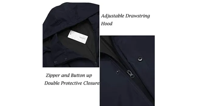 These Jinidu jackets are available in a modern, functional style of casual fit, high collar with button closure, flexible string hood, close button pockets, classic solid color, a little longer than the knees to protect you against the storm. It's easy to pack and carry and is ideal for flying, lightweight and packed.