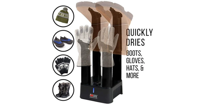 - Boot dryer deodorizes all footwear and garments
