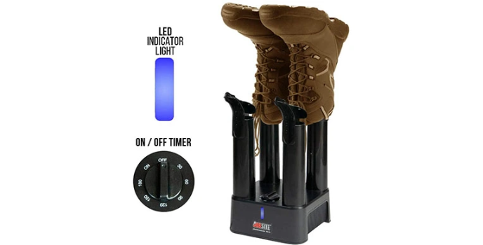 The Jobsite shoe dryer is designed so that you can dry wet boots, shoes, gloves, hats, or garments very fast with warm fan-forced air and use them repeatedly. It heats to 200 watts, i.e., 98-110 F. A Jobsite Boot Dryer warms your shoes; not only this, but it also prevents odor with a timer and fan.