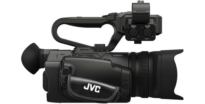 JVC GY-HM250U has full-screen graphics that overlay to record stunning videos. It also has an optical zoom lens with sensors that delivers stunning recordings directly to the memory cards. And not just that, It also includes a top handle unit to which you can attach microphones and any other audio inputs.