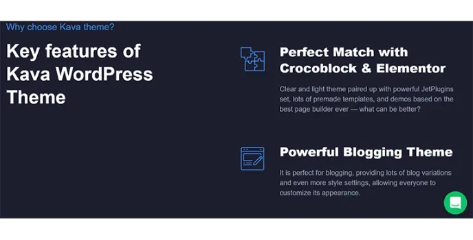 Kava is developed by Crocoblock that gives super fast-performing websites to start online stores and portfolios for accelerating the business growth effectively. Create the best and attractive site layouts; necessary elements include plugins and free themes for elementors like Kava that enable you to use multiple wordpress themes that let you create clean-style web pages seamlessly.