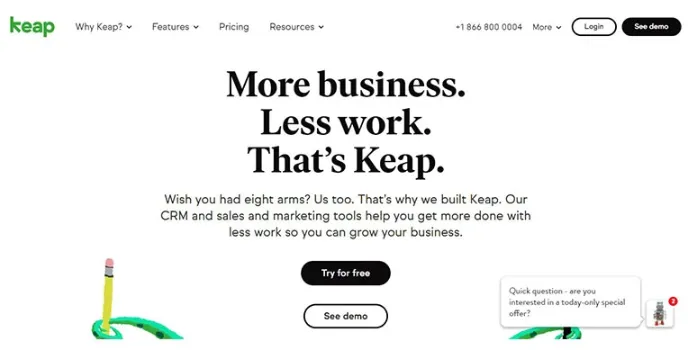 What makes Keap successful is its ability to close leads consistently. The sales processes are set up repeatedly so that your sales team can approach them regularly to complete those dead successfully. This tool helps track all leads regularly. All quotes can be sent to the lead directly from your CRM. All your repetitive marketing tasks are automated with ease. You can also call it the best landing page builders website as they automate the leads and turn them into purchases.