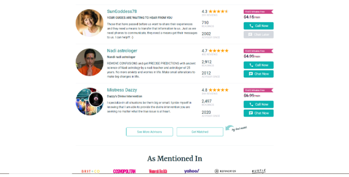 Keen is one of the premium horoscope websites that you can find online. You will meet the top-rated and experienced advisors who help you in making or finding the right solutions. You can ask questions related to love & relationship, life questions, and many more.