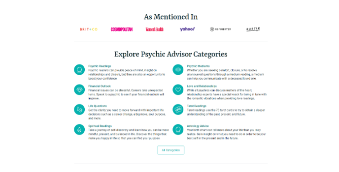 Keen is a trusted network of talented spiritual advisors dedicated to empowering lives by helping people discover answers to their most pressing questions, gain closure, find their purpose in life, and more. It satisfied customers with love and relationship advice, tarot readings, life questions, astrological compatibility, psychic readings, mediumship readings, and the Best Websites For Birth charts.