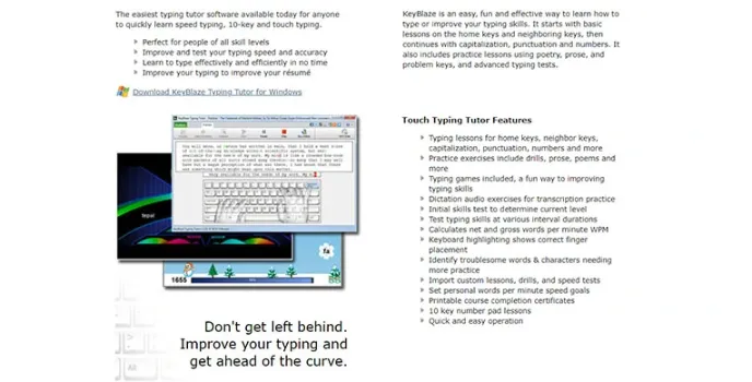 On-screen keying guides, practice lessons sessions, and games make the KeyBlaze a unique Online Typing Tutor. If you look for more alternative Online Typing Programs, Kaz and Typing.com are the best options.