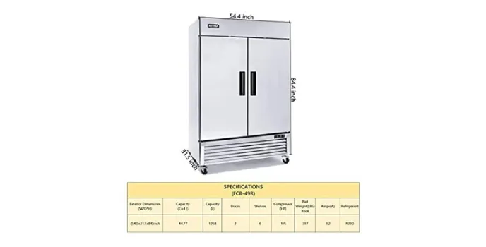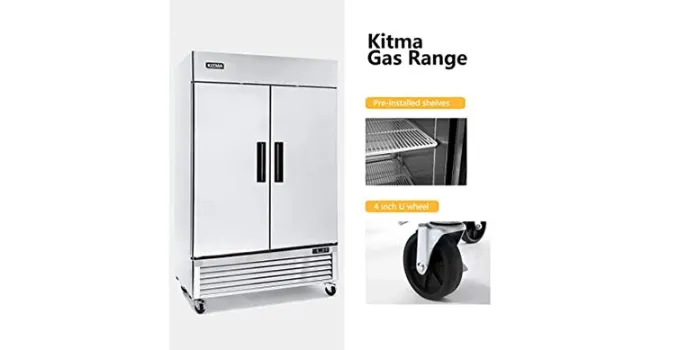 The Kitma refrigerator is an industrial refrigerator that has a bottom-mounted layout of the 1/3 hp compressor not merely pulls in cooler air for power efficiency but also lifts up the bottom shelf, so you don’t have to kneel as much during piling and unpacking. It disseminates R290 refrigerant. Also, this component has a voluntary defrost cycle, so you don’t need to expend valuable time vacating the ice.