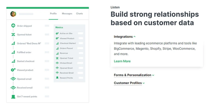 Klaviyo the best Email Marketing Software has integrations with Magento, Woocommerce, Bigcommerce, Shopify. Klaviyo allows drag and drops WYSIWYG email composer, which helps you create email designs easily, and the preview option provides a visual of how it might look in the subscriber’s inbox.