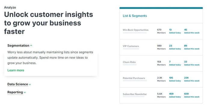 Klaviyo is too advanced, and in-depth can take your email marketing. When it comes to automation and targeting, Klaviyo can set up multifaceted segmenting rules, as well as email flows can branch off in different possible ways depending on the rules you created.