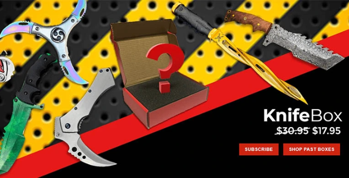The knife subscription box also features mini scythe and automatic punisher. KnifeBox has different choices of knives for different purposes and needs, and multiple levels of theme purchases. It is similar to Blade City and RavenCrest Tactical having the same features.
