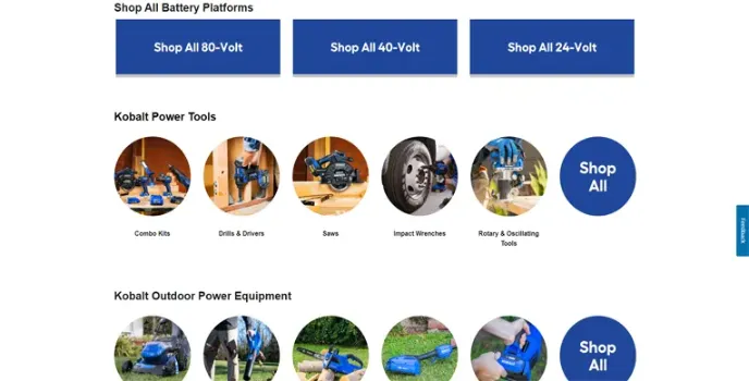 Kobalt offers a vast range of battery tools ranging in power consumption from 24-volt to 80-volt. Users can choose wireless gadgets other than power-consuming ones. They provide upgraded solutions and tools to enhance your cost-effectiveness. The line includes Kobalt power tools, Kobalt outdoor power equipment, Kobalt Power Collections, Kobalt Hand Tools, and Kobalt Air Tools & Compressors.