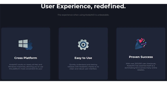 Kodai AIO works on all machines that support mac and windows, letting you use it on any platform which you think is most convenient to you. It has an easy-to-use interface with no complications that quickly understands and destroys the new releases. These Shopify Bots are a powerful force that dominates nearly all retailers. It is more than just a desktop application. They go above our expectations and ensure to excel in satisfying you in every possible way. Kodai AIO keeps evolving with new features to help create efficiency and help you to be always on the top during new releases.