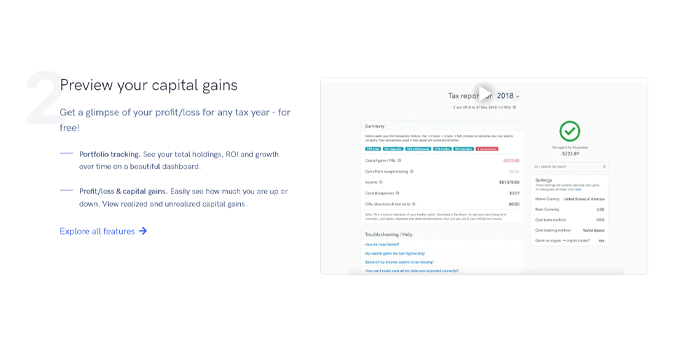 Koinly is one of the quickest crypto tax software that promises to provide reports quickly. The users can access all their cryptocurrency reports in less than 20 minutes of time. It also helps the users to save taxes nearly for a year.