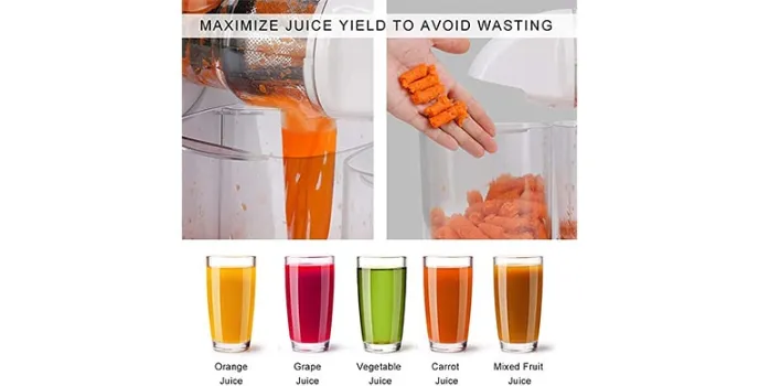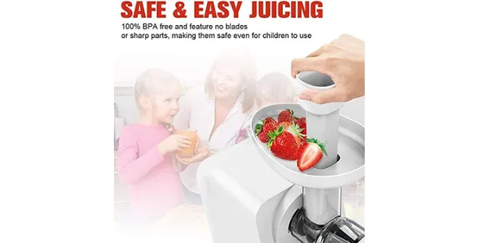 This best slow juicer is also easy to assemble, and it consists of a chamber assembly that can compress the ingredients, an auger, spinning brush, juice strainer, and an ac motor assembly. The two different compartments of this slow juicer are detachable and enable an individual to disassemble it easily. Moreover, as this KOIOS slow juicer's components are made from BPA free materials, one can also make baby food using this best slow juicer.
