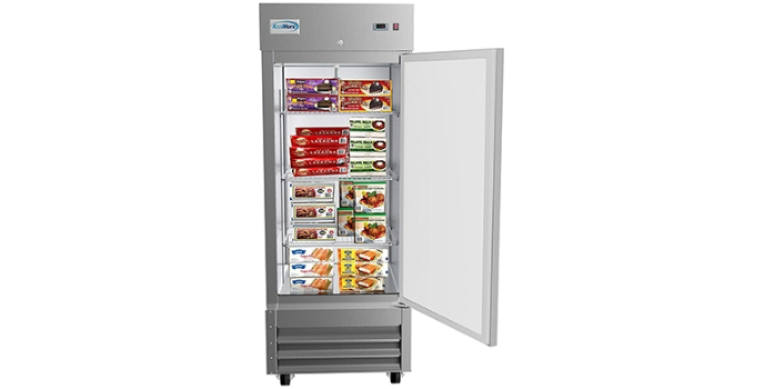 Even though it is a single-door minimalist commercial upright freezer from KoolMore, it has enough space for storing a week’s supply of produce. With a 23 Cu. Ft. volume capacity, adjustable shelves, and reach-in facility, this refrigerator sure has a very spacious room for storage and cleaning.
