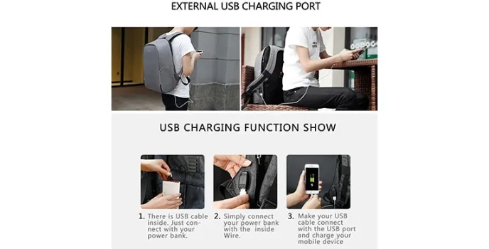 Kopack backpack product has an ABS base that makes your bag clean and also has an external USB port with a built-in cable that can be charged to get a convenient charge smartphone or laptop without opening up this backpack and taking it out to power it up once again.