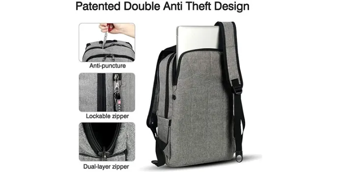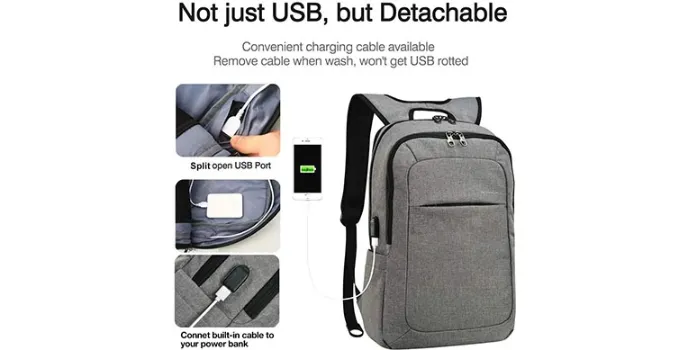 This Kopack anti-theft backpack has a built-in USB charging slot on one side that can be connected to the power-bank inside the bag, letting one enjoy an unperturbed mobile time for a long.